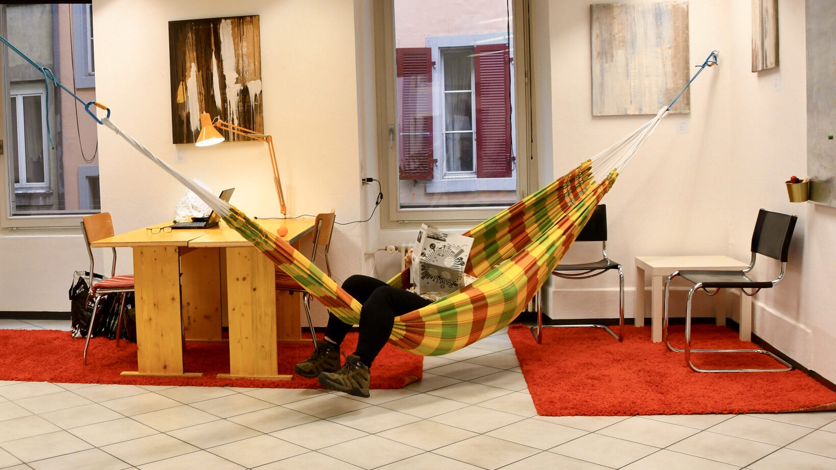Unserer Räume stellen wir im «Format 15-14» zur vertieften Auseinandersetzung oder Animation, für Ausstellungen und Präsentationen zur Verfügung. Der Raum kann zum Beispiel künstlerisch bespielt oder die «Bühne» des ORTes genutzt werden. Ausstellungen werden von uns während den Öffnungszeiten gehostet.
