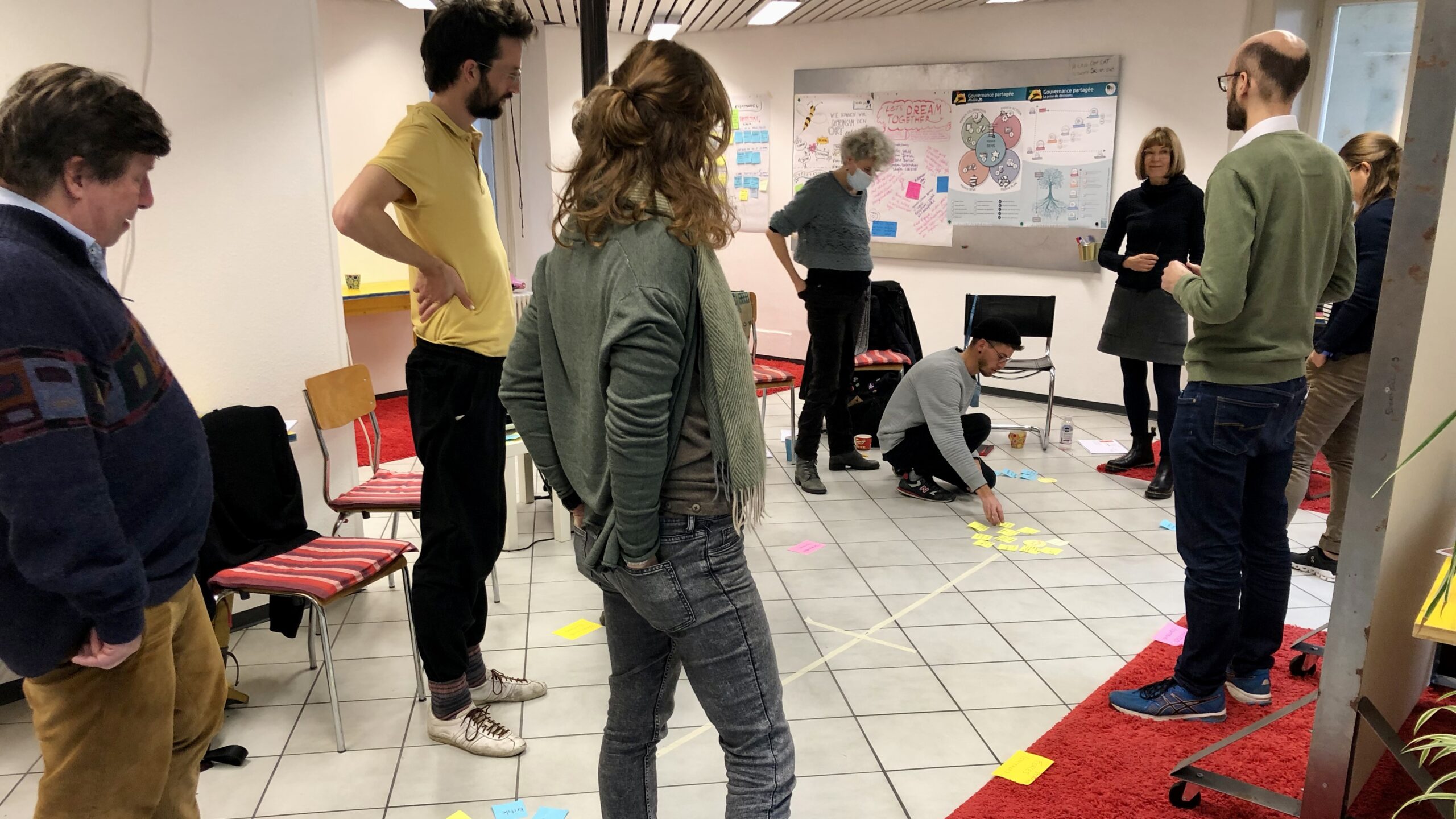 - Nutzung der vier Stellwände (2 oben, zwei unten)